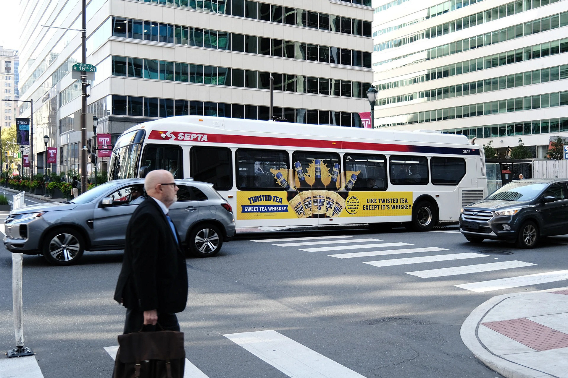 Conceptualized and designed a large-format bus wrap advertisement for Twisted Tea Whiskey displayed on SEPTA buses in Philadelphia. The creative focused on bold brand presence, vibrant color, and large-scale typography to maintain strong readability and visual impact in motion and at street level. The layout was developed specifically for full-vehicle graphics and prepared for large-format print production.